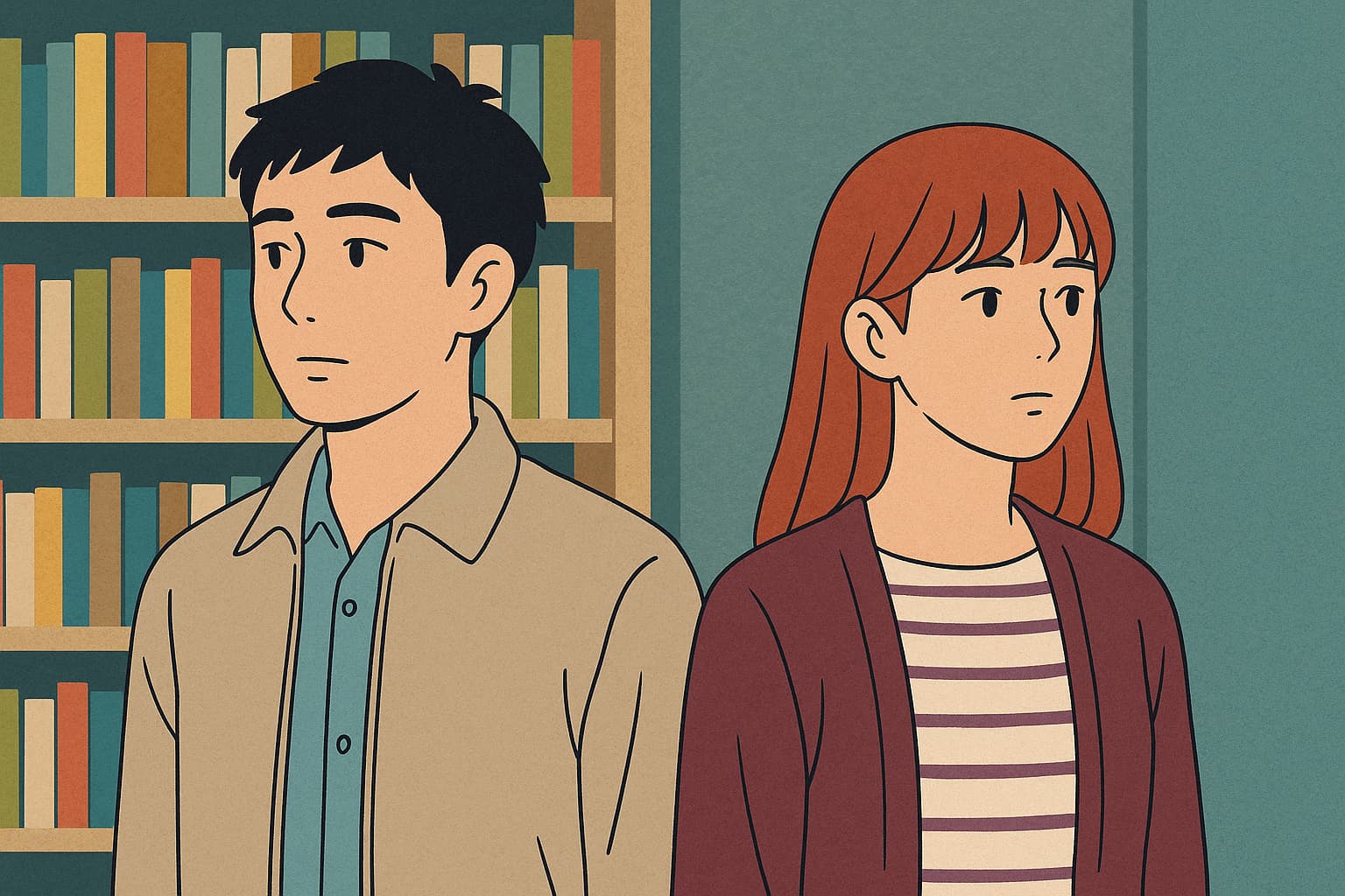 図書館という「言葉」と「沈黙」が混ざる場所で、二人は偶然再び出会う。