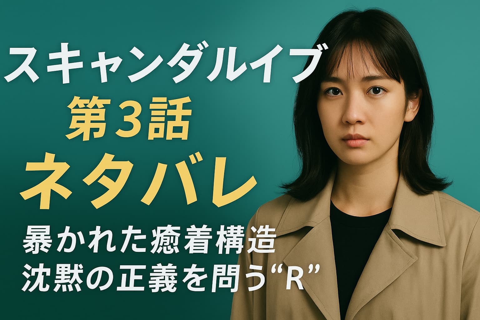 第3話のラスト3分は、ドラマ全体を裏返す「起点」だった。静かな一文字「R」が、これまでのスキャンダルすべてを再構築する。そして次回、真実は“記事”ではなく、“人間”の中に潜むことが示されるだろう。