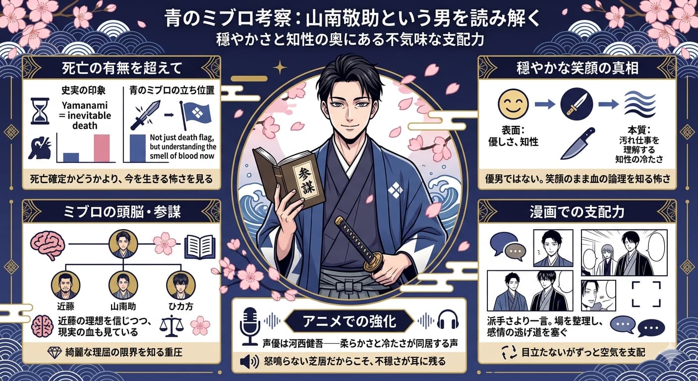 『青のミブロ』の山南敬助が気になる人は、ただの人物紹介を読みたいわけじゃない。山南敬助は死亡するのか、漫画ではどこまで重要人物なのか、あの穏やかな顔の奥に何があるのか、そこをまとめて掴みたいはずだ。