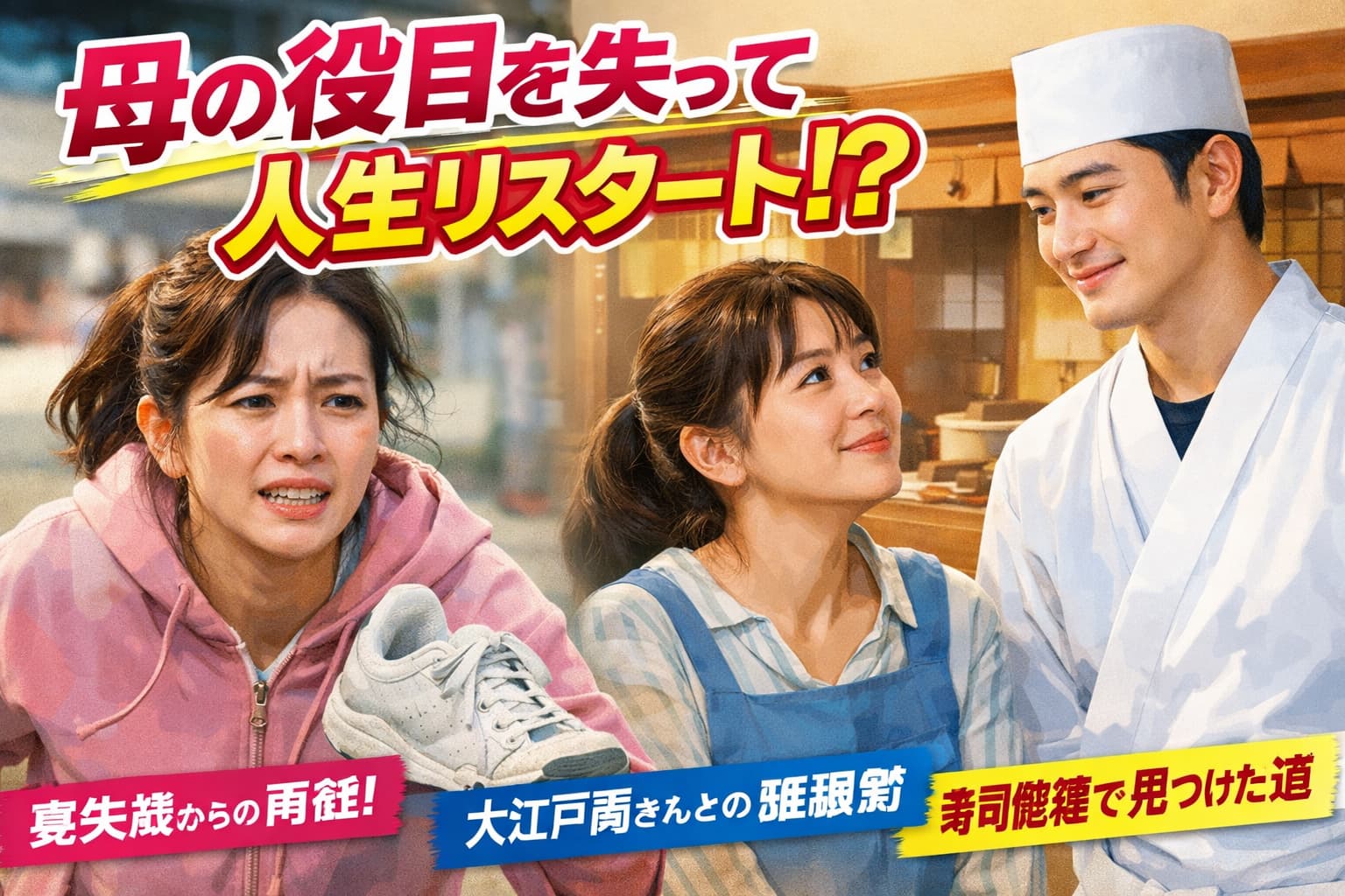 寿司職人を目指す物語と聞くと、ふつうは修業の厳しさや、才能の有無や、技術の壁が前に出る。包丁さばき、所作、師匠の圧、ミスの連続、積み上がる成長。そういう見せ場はいくらでも作れる。でも今のところ、この作品がしつこく見ているのは技術の優劣ではない。見ているのは、人生の役目が一段落したあと、人は何を拠り所に立ち上がるのかという、かなり地味で、かなり切実な問題だ。