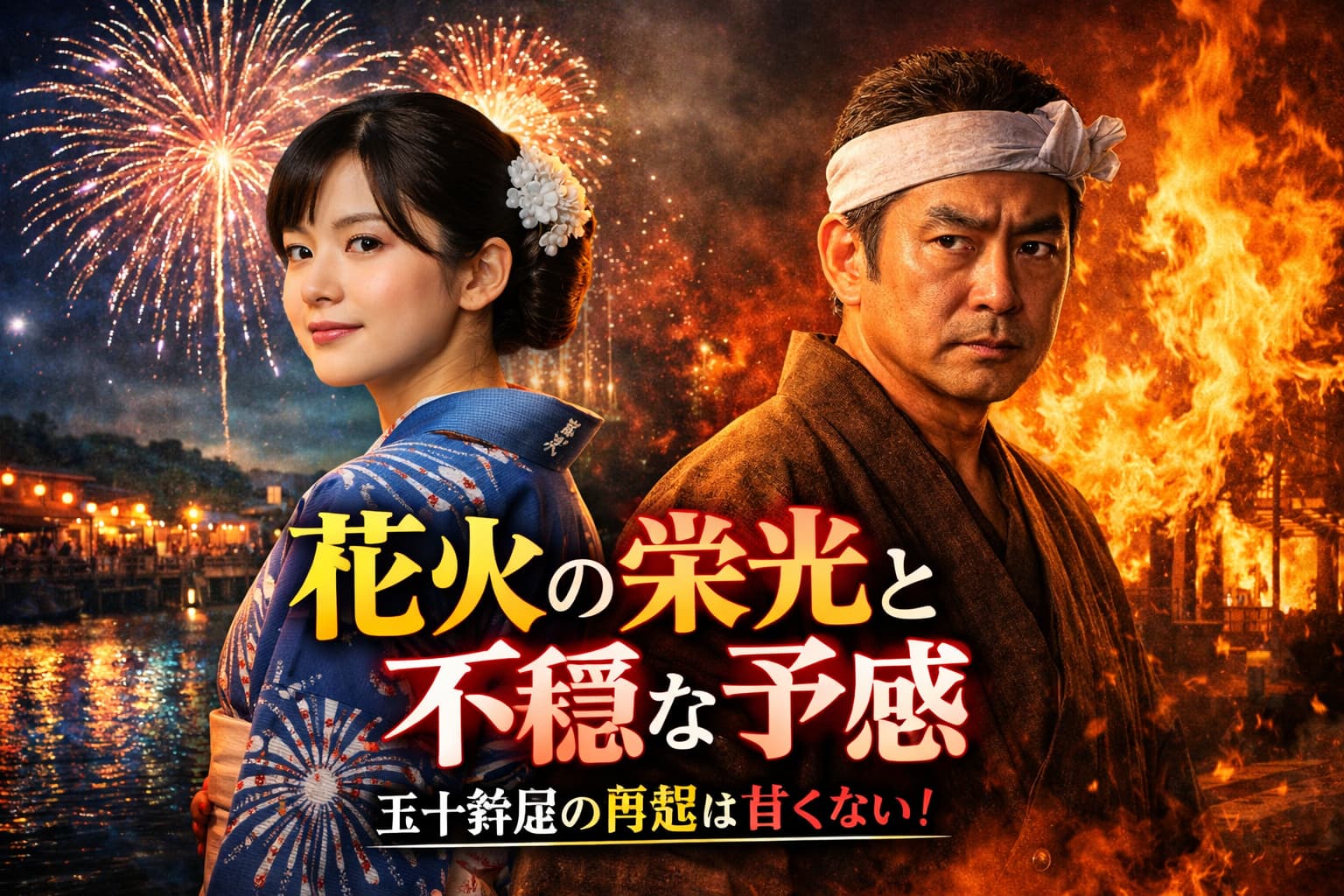 しかも、この勝ちは数字の話だけでは終わっていない。五十鈴屋の面々が同じ方向を見ていたこと、それぞれの腕が「店を持ち直させるための技」になっていたこと、その状態そのものが尊い。商いのドラマで本当に見たいのは、こういう瞬間だ。売れたあとに拍手して終わる話ではなく、売れるまでに何がどう噛み合ったのかが見える話。だから花火の夜は気分がいい。派手だからではない。地道だったものが、最後にあれだけ華やかな景色へ変わるからだ。