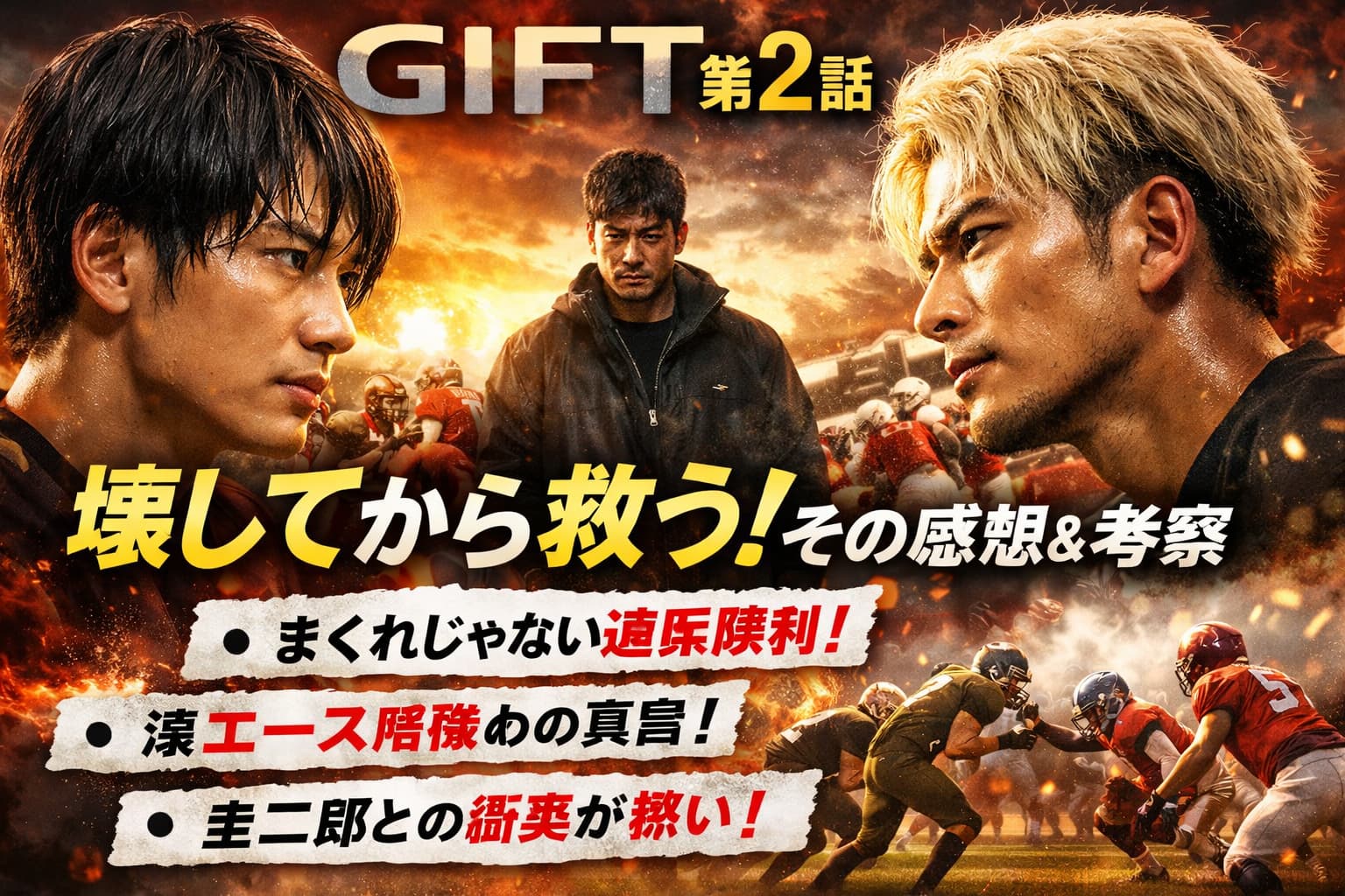 第2話の核心は勝敗じゃない。誰をいったん壊し、誰に火をつけ、ブルズをどこまで崩してから立て直すつもりなのか。その冷酷さと希望を追う構成にする。