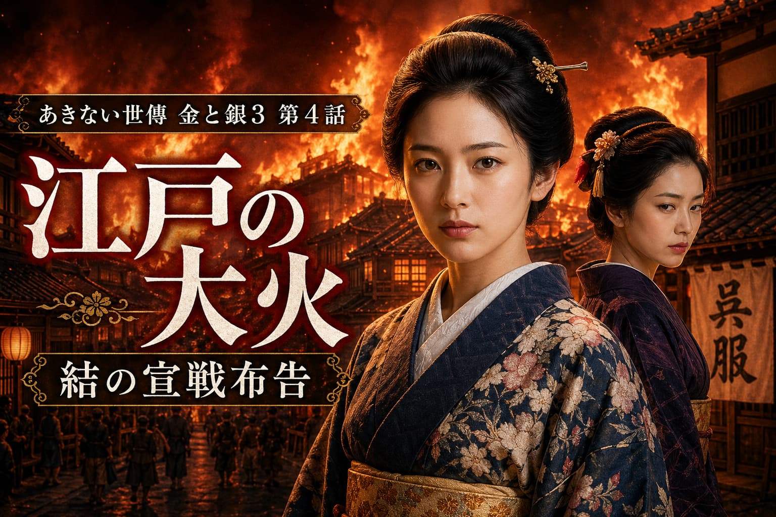 『あきない世傳 金と銀3』第4話は、江戸の大火で町が焼ける話やのに、いちばん怖かったんは火やない。無事に生き残った結の目つきと、幸に向けた宣戦布告や。