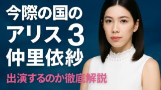 今際の国のアリス 今際の国のアリス3 仲里依紗は出演する?ミラの行方を解説 「今際の国のアリス3 仲里依紗」と検索する人がまず気になるのは、あの“心を壊す女王”ミラが再び姿を現すのかどうかでしょう。Netflix公式のキャスト発表に仲里依紗の名前はなく、シリーズの軸は新たな「ジョーカー編」へ移行しています。では、彼女の役割は完全に終わったのか? それとも回想やサプライズで再び現れる余地があるのか? 本記事ではキャスト情報、物語の流れ、そして今後の可能性まで徹底解説します。 2025.09.27 今際の国のアリス