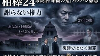 相棒season13 第5話『最期の告白』は、冤罪の真相を暴く回に見えて、その実、父親でいたかった男の執着と、真実を踏みつぶした警察の腐りを同時にえぐる話だ。 相棒13 5話『最期の告白』のネタバレだけ拾うなら、真犯人は滝沢、罪をかぶったの...