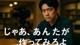 じゃあ、あんたが作ってみろよ 「じゃあ、あんたが作ってみろよ」第1話ネタバレ 壊すことでしか救えない人たちの物語 「じゃあ、あんたが作ってみろよ」——この言葉には、怒りよりも、祈りのような痛みがある。第1話は、才能と無力、理想と現実がぶつかる“制作現場”の物語。だが本当に描かれているのは、仕事の話ではない。これは「信じるものを諦められない人間たち」の群像劇だ。今回は第1話のネタバレとともに、作品が仕掛けてくる“心の分解音”を、キンタの思考で解剖していく。 2025.10.07 じゃあ、あんたが作ってみろよ