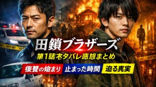 田鎖ブラザーズ 田鎖ブラザーズ第1話ネタバレ感想 ひき逃げで終わらなかった。復讐の正体が初回を一段深くした 『田鎖ブラザーズ 第1話 ネタバレ 感想』として見るなら、この初回はただの事件解決回ではない。ひき逃げ犯を追う話に見せかけて、その奥に“復讐ひき逃げ”という苦い真実を潜ませた構成がきっちり効いていた。 とくに終盤、大河内順の正体が明かされた... 2026.04.18 田鎖ブラザーズ